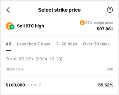 Nếu bạn sở hữu BTC, chọn giá mục tiêu để bán BTC và thời gian đáo hạn: