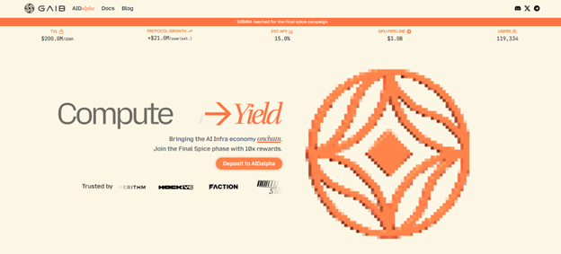 GAIB đã huy động được tổng cộng 15 triệu USD qua nhiều vòng gọi vốn từ các công ty đầu tư mạo hiểm và nhà đầu tư trong lĩnh vực cơ sở hạ tầng tiền điện tử và AI.