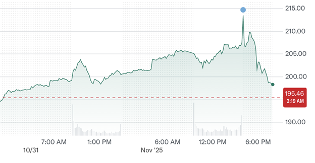 Palantir Technologies (NYSE: PLTR) chứng kiến giá cổ phiếu giảm hôm nay, giảm hơn 4% trong phiên giao dịch ngoài giờ vào ngày 4 tháng 11 năm 2025, mặc dù đã đóng cửa phiên giao dịch chính gần mức $207. Sự sụt giảm xảy ra ngay sau khi công ty báo cáo kết quả kinh doanh quý ba ấn tượng, vượt qua kỳ vọng của Wall Street về cả doanh thu lẫn lợi nhuận. Dù PLTR đã có một năm tăng trưởng ngoạn mục — tăng hơn 170% tính từ đầu năm — việc bán tháo hôm nay cho thấy sự hưng phấn của nhà đầu tư dường như đang hạ nhiệt, ngay cả khi kết quả tài chính xuất sắc.