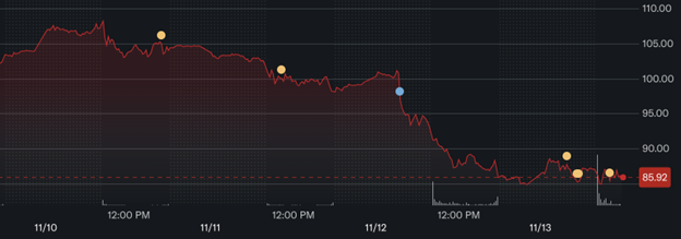 Circle Internet Group (NYSE: CRCL), công ty đứng sau stablecoin USDC, đã phải chịu một đợt giảm giá kịch tính lên tới 12% chỉ trong một ngày vào 12/11—mức giảm mạnh nhất kể từ khi IPO vào tháng 6. Giá cổ phiếu đã lao dốc từ khoảng 98 đô la xuống còn 86 đô la, xóa sạch một phần đáng kể những khoản lãi sau IPO và làm dấy lên lo ngại trong giới đầu tư cũng như các nhà phân tích. Đợt bán tháo này càng đáng chú ý hơn khi Circle vừa công bố kết quả kinh doanh quý 3 mạnh mẽ và ngày càng mở rộng vai trò trong hạ tầng tiền mã hóa toàn cầu.