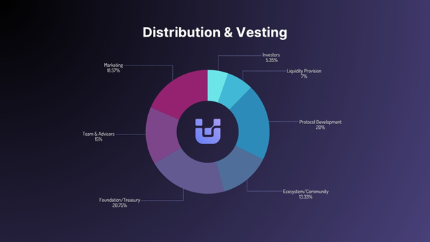 - Phần thưởng cho hệ sinh thái: UAI được sử dụng để khuyến khích nhà phát triển, người dùng sớm và người tạo tác nhân thông qua các khoản tài trợ hệ sinh thái, tiền thưởng phát hiện lỗi và các thử thách đổi mới, giúp thúc đẩy chấp nhận và cải thiện giao thức