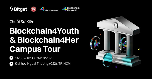 Chuỗi hành trình lan tỏa tri thức blockchain do Bitget khởi xướng — Blockchain4Youth & Blockchain4Her Campus Tour — sẽ chính thức ghé thăm Đại học Ngoại Thương (CS2), TP. Hồ Chí Minh vào 16:00 – 18:30, ngày 26/10/2025.