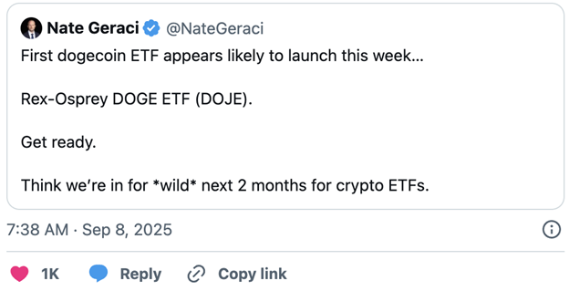Những tiền lệ này cung cấp nền tảng giá trị cho bất kỳ dự báo giá Dogecoin nào vào lúc DOGE ETF đang lên sóng. Kỳ vọng mạnh mẽ rằng dòng tiền tổ chức tương tự có thể thúc đẩy lợi nhuận lớn cho DOGE, nhất là khi quỹ đầu cơ, quỹ lương hưu và các khách hàng môi giới nhỏ lẻ có thể tiếp cận Dogecoin qua một sản phẩm quen thuộc.