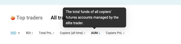 - Kiểm tra thứ hạng của nhà giao dịch hoặc tổng tài sản đang được quản lý (AUM) – là tổng số tiền trong các tài khoản của tất cả người sao chép do nhà giao dịch đó quản lý.