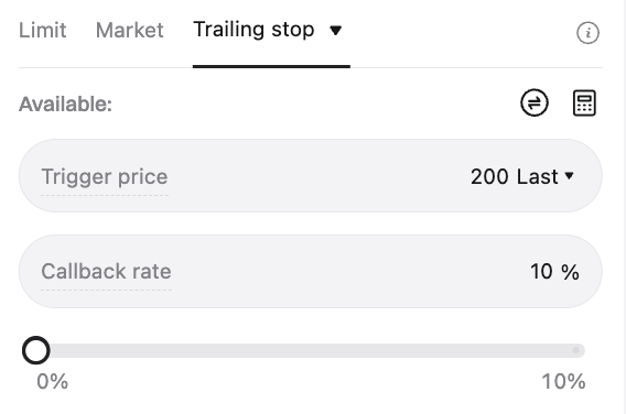 Lệnh cắt lỗ trailing này sẽ được kích hoạt khi giá ETH tăng lên 200 USDT và giá cắt lỗ sau khi kích hoạt = giá ETH cao nhất sau khi kích hoạt × (1 – 20%). Khi giá ETH giảm 20% từ mức cao nhất, hệ thống sẽ tự động bán ETH ở giá thị trường tốt nhất.