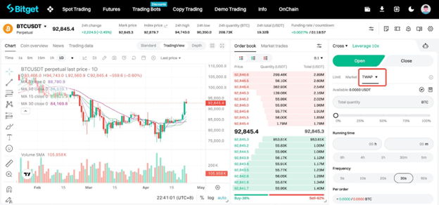 Ví dụ về TWAP tiền điện tử trên Bitget