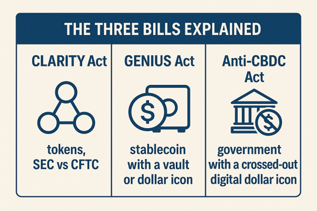 Ngày 3/7/2025, Hạ viện Hoa Kỳ chính thức công bố tổ chức U.S. “Crypto Week”, trong đó sẽ tiến hành bỏ phiếu đối với ba dự luật quan trọng về tài sản kỹ thuật số. Đây là lần đầu tiên cơ quan lập pháp Mỹ dành cả một tuần để thông qua các khuôn khổ pháp lý có thể tái định hình toàn bộ thị trường tiền mã hoá và stablecoin trên quy mô toàn cầu.